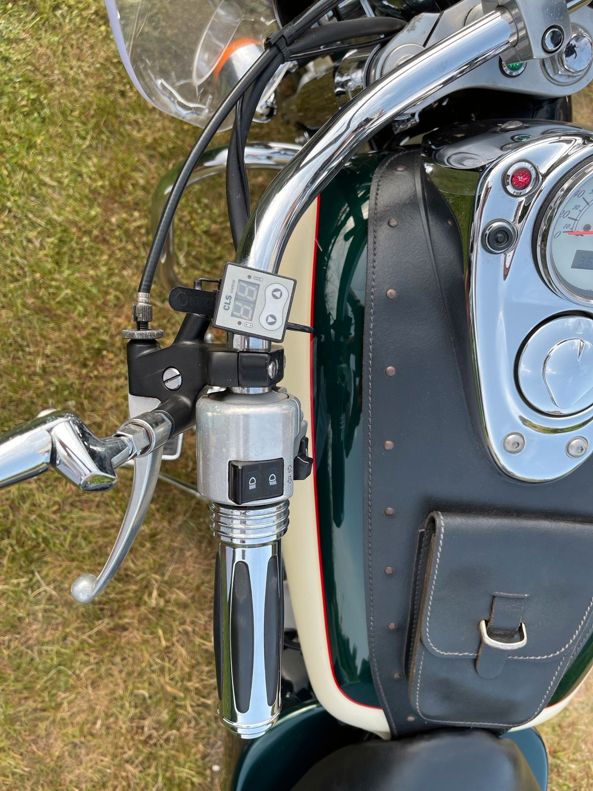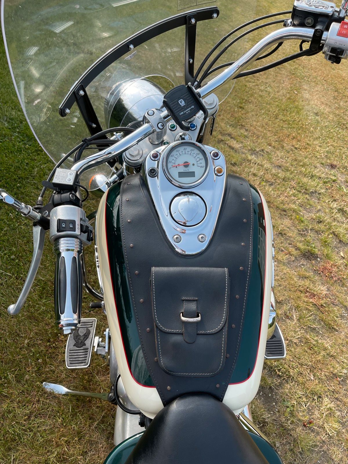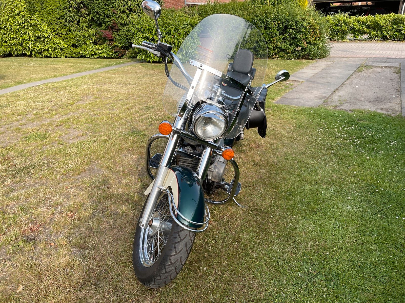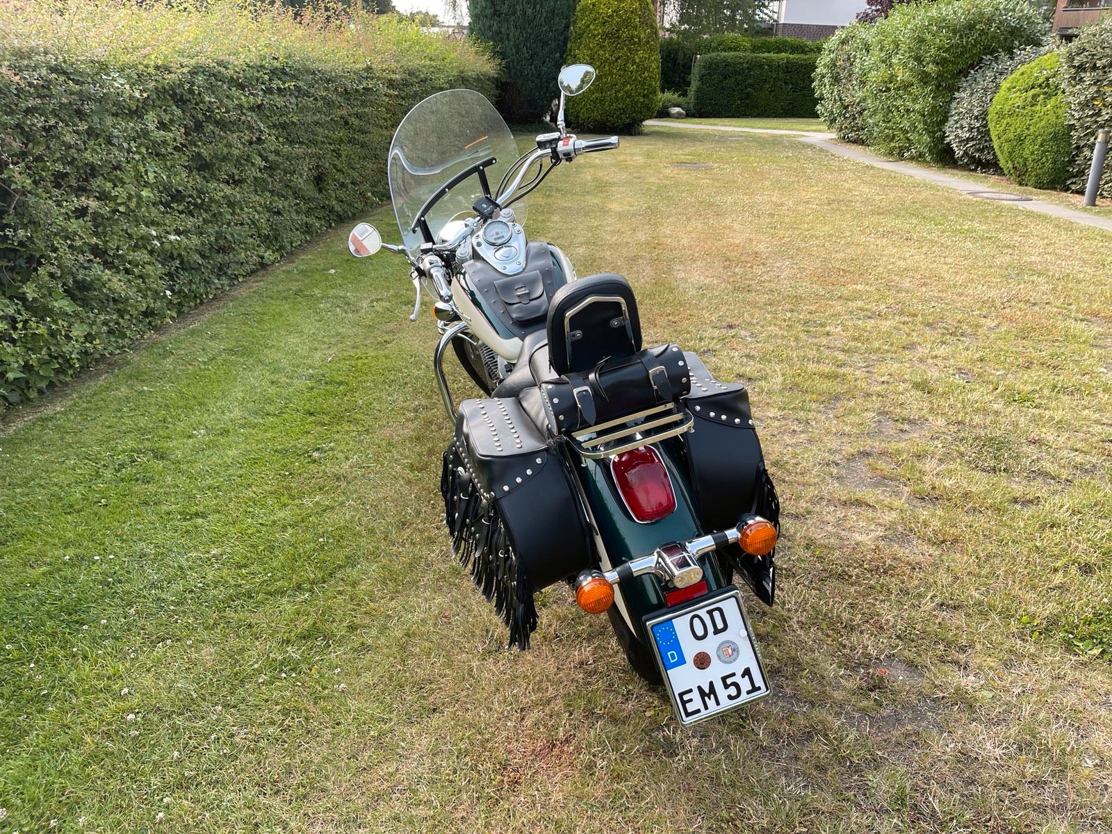 Die VT hat viele schöne Details und stand immer in einer Garage. Satteltaschen und eine Lederrolle an der Sissybar. Tourenscheibe und viel Chrom. Automatische Kettenölung. Für einen guten Sound sorgt die Silvertail Auspuffanlage. TÜV neu. Inspektion mit Tausch aller Flüssigkeiten wurde gerade frisch gemacht. Sie ist in einem Top Zustand. Probefahrt kann gemacht werden.