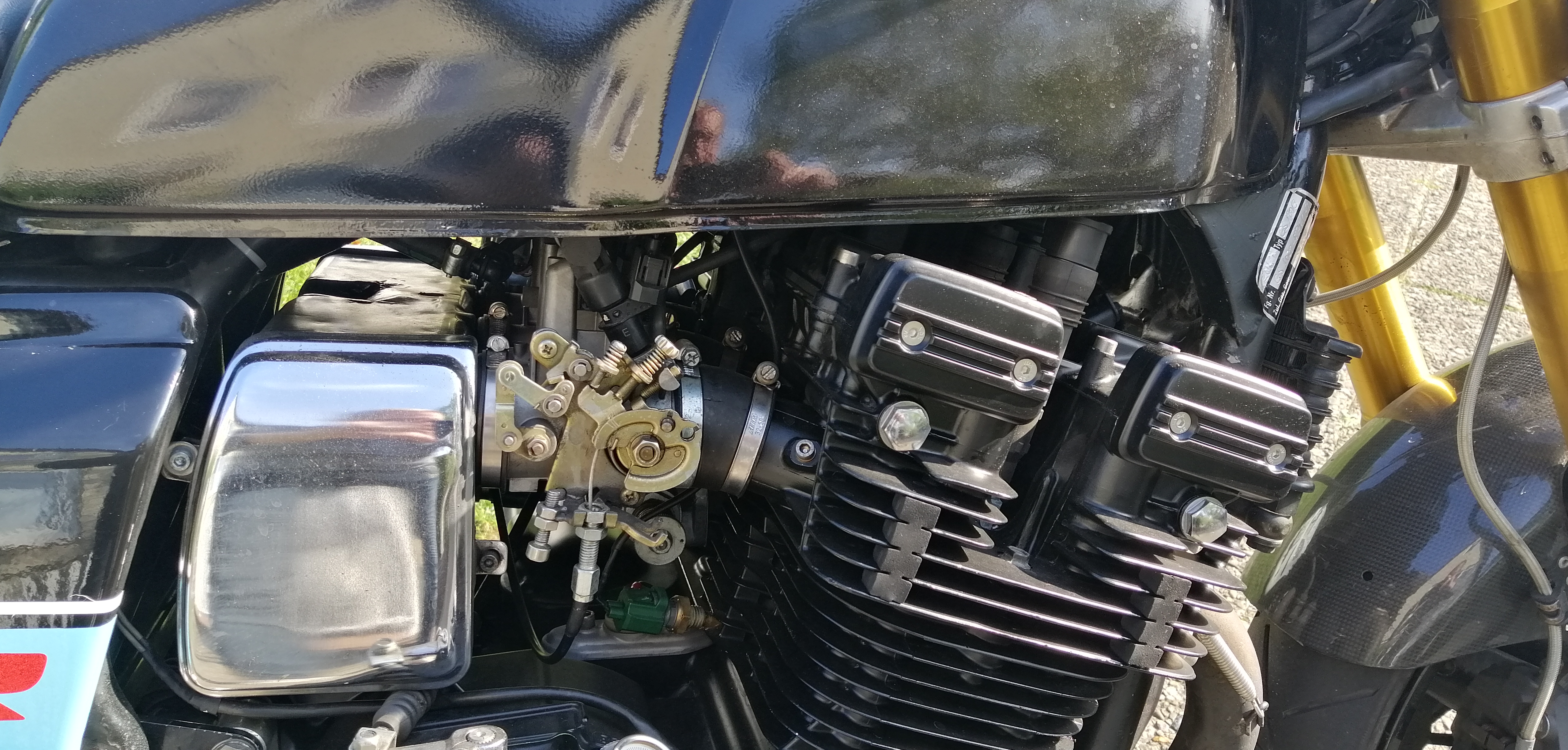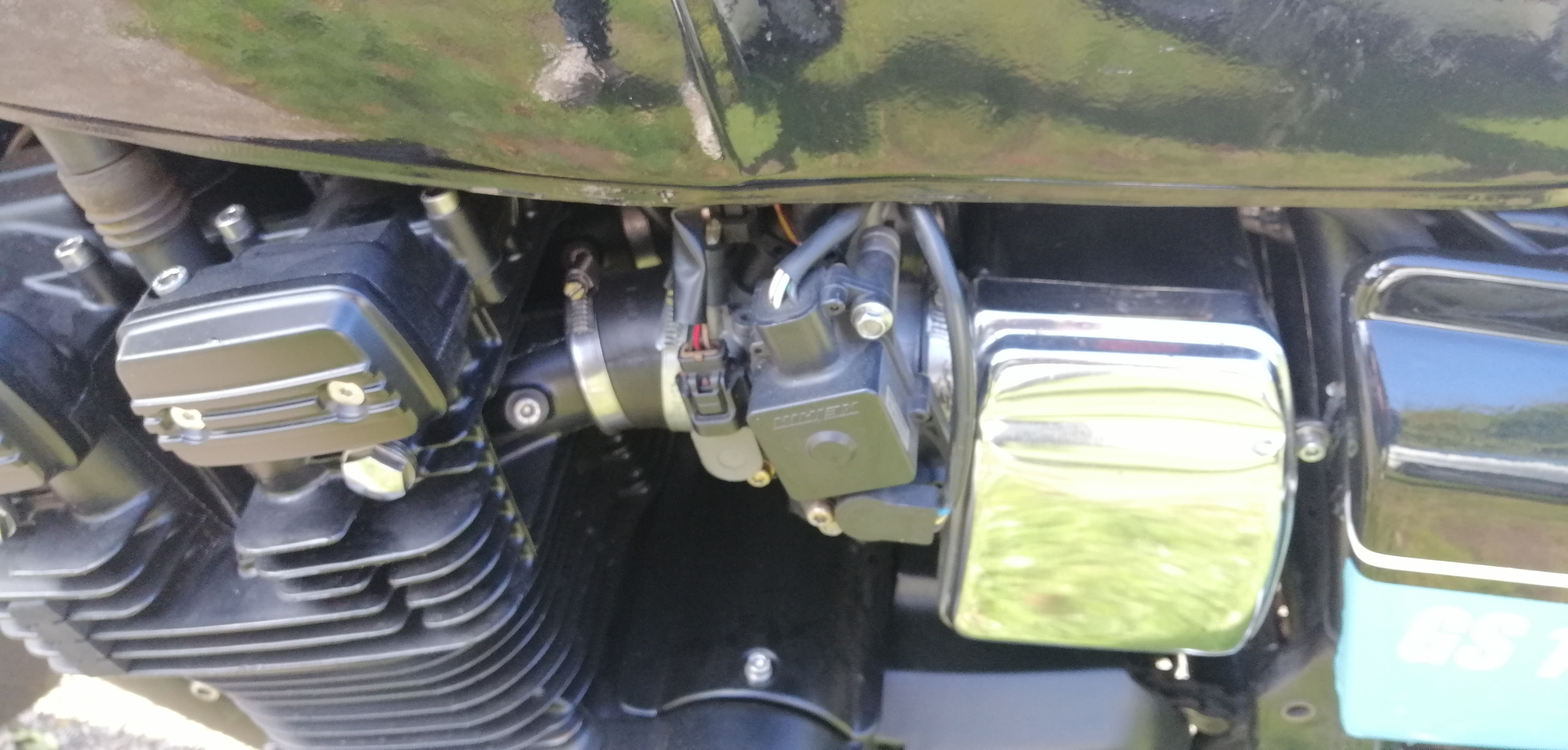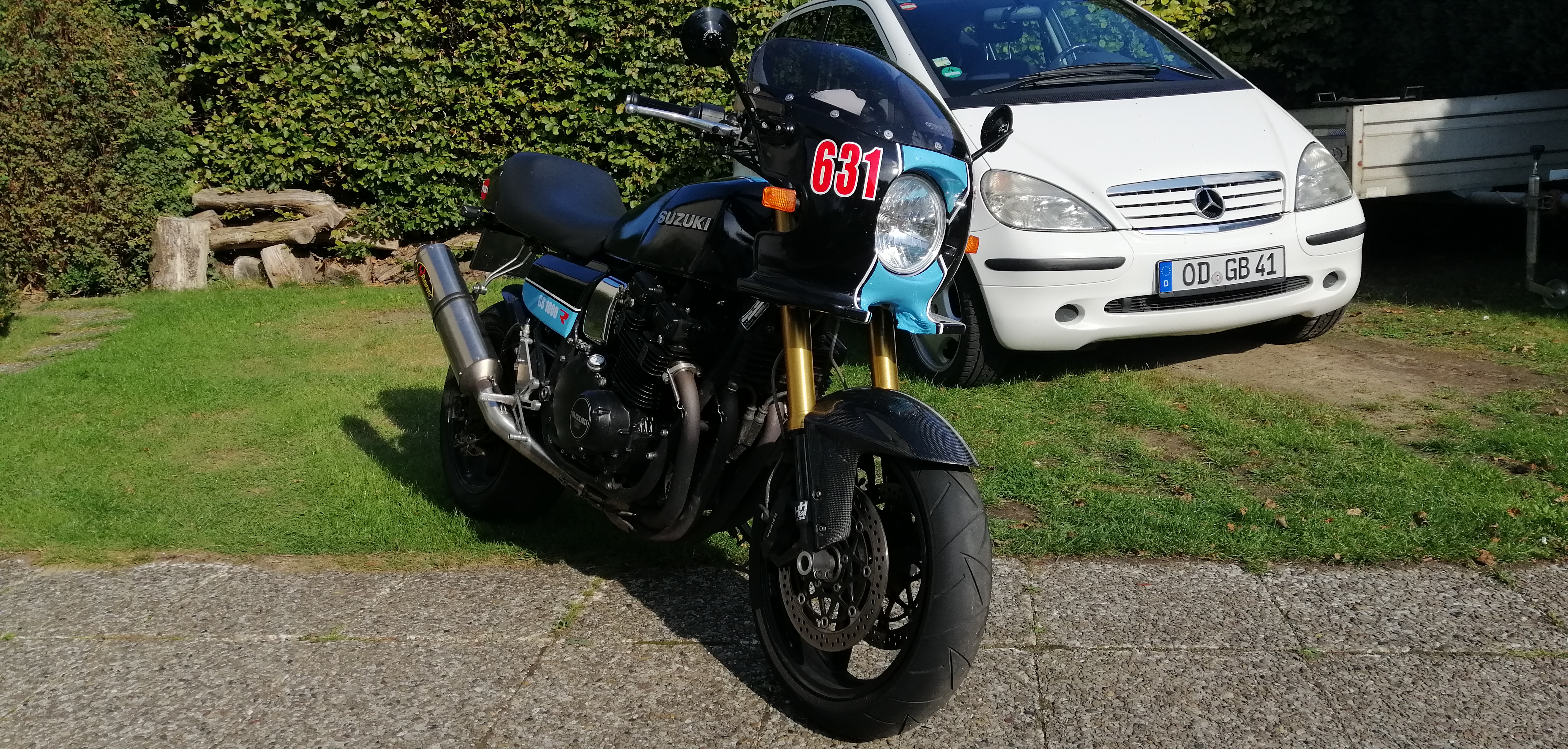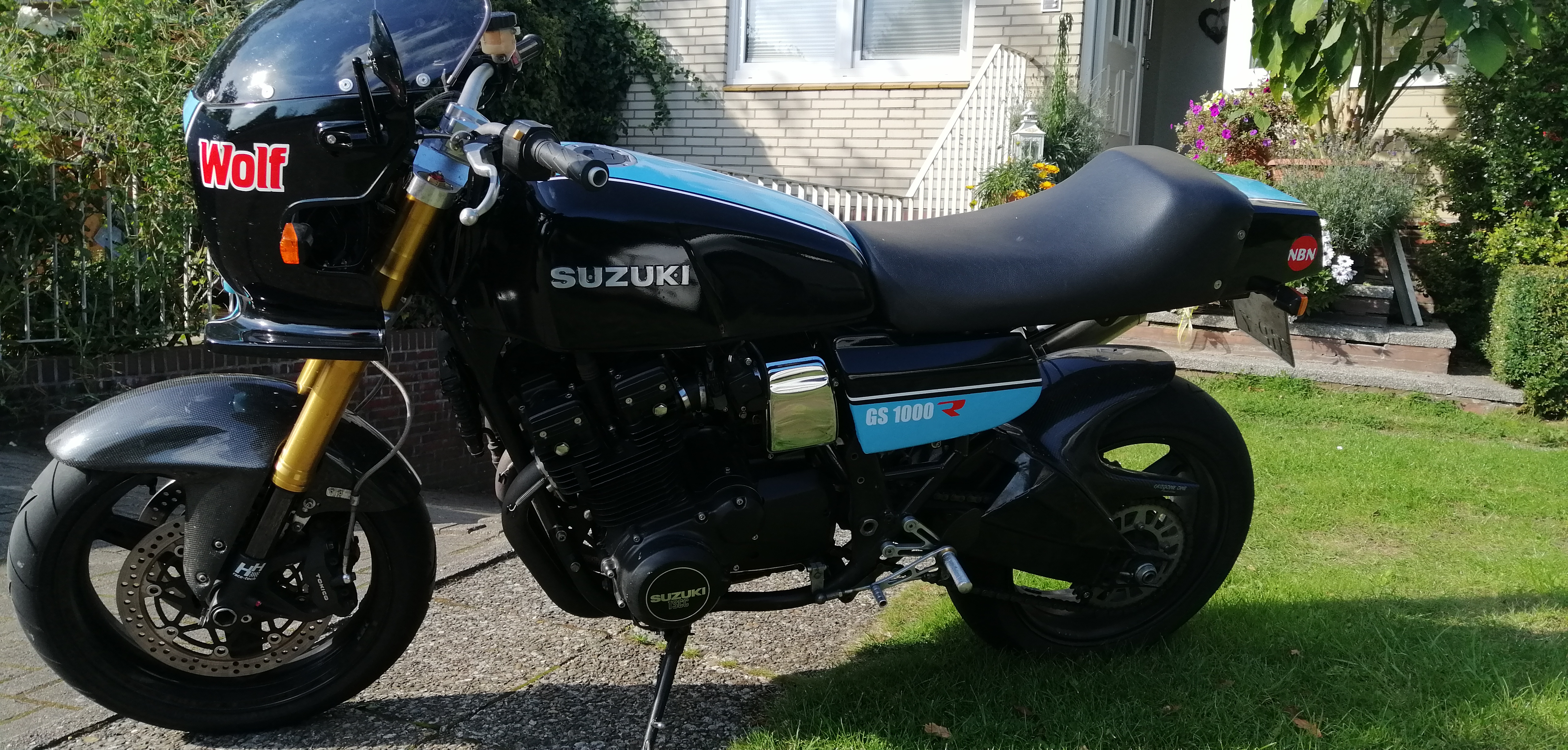GS 1000 R komplett Umbau mit Einspritzung. Einspritzanlage, Räder, Schwinge, Gabel und Bremse von GSX-R 1000. Der Motor wurde vor 1200 km von Ingo Wrubel aufgebaut und läuft super. Viele weitere Extras wie Superbike-Lenker, Spiegel von Highsider, Stahlflex vorn und hinten, Akrapovic Endtopf, Rahmenumbau auf Yoshimura, Fussrasten und vieles mehr.