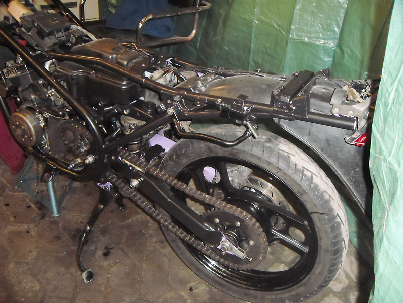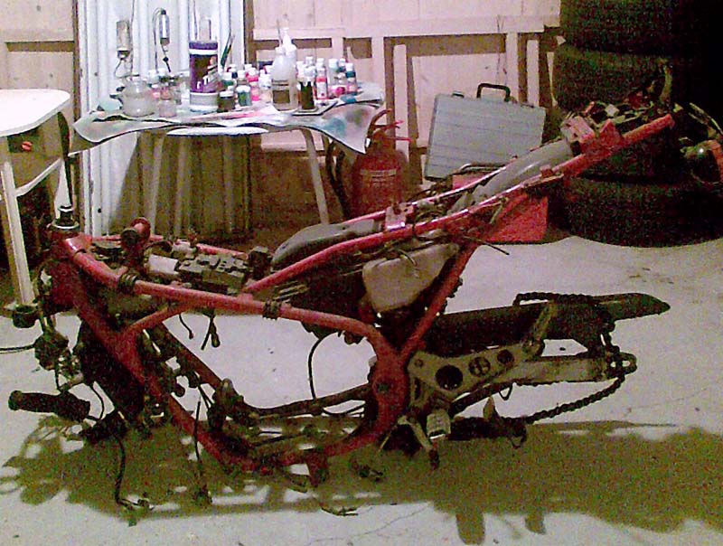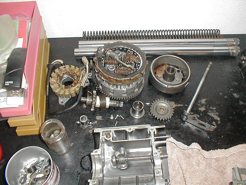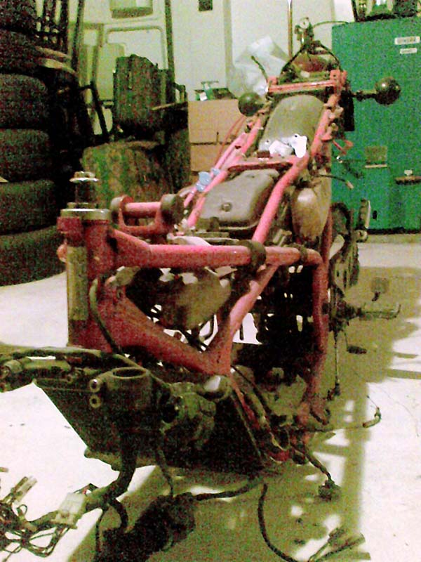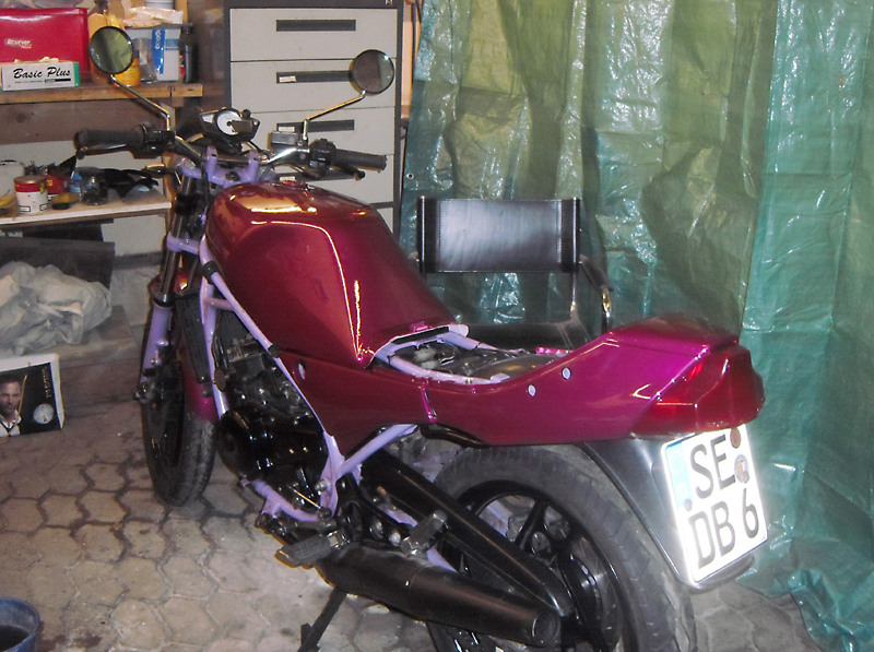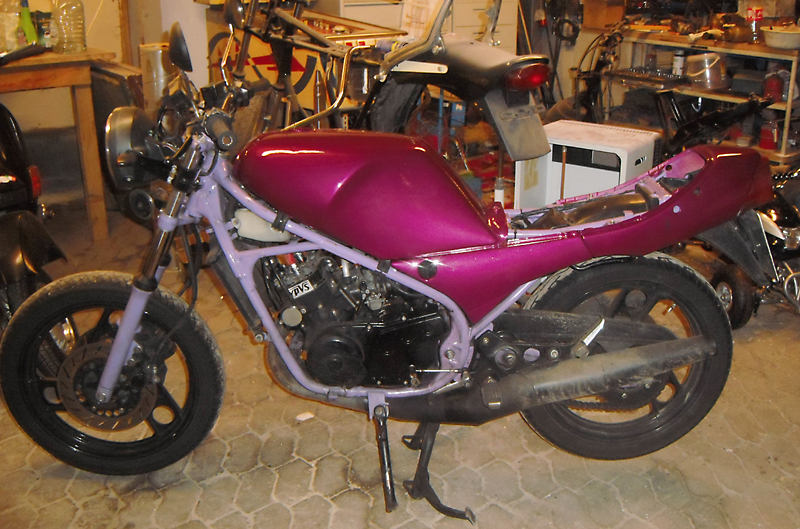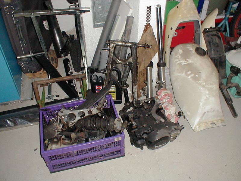 Wir schreiben das Jahr 1986. Geplant war für dieses Jahr eigentlich mit der über Winter angeschafften, ein Jahr alten, GPz 900 R die Saison zu bestreiten. Der Traum platzte jäh, als ein Motorradfreund eine Probefahrt auf besagter 900 R im Obstbaum im Alten Land beendete. Kohle hatte zu dieser Zeit keiner von uns. Und so bot er mir seine DUCATI 900 MHR zum Tausch an (Gott bewahre, ich wollte doch fahren und nicht schrauben). Ich enschied mich dann doch lieber für eine Ratenzahlung seinerseits und kaufte mir von der ersten Rate eine gebrauchte RD 350 YPVS. Was dann mit mir passierte, war vorher nicht abzusehen. Meine damalige Zweitakterfahrung erstreckte sich auf mein erstes Motorrad, eine RD 250 Baujahr 1970. Danach war ich nur noch großvolumige Vierzylinder-Viertakter gefahren. Wie dem auch sei, ein Apfel ist kein Osterei. Nun also die "Höllenmaschine" RD 350 YPVS 31K mit 59 PS. Die RD war von "Höllenmaschine" weit entfernt. Sie lief kultiviert, mit akzeptablem Durchzug und ansprechender Höchstleistung. Dazu dieser kreischende Zweitaktsound - HAMMER! Fahrwerk, Bremsen und die unwahrscheinliche Leichtigkeit des Seins - so habe ich bis dahin Motorradfahren noch nicht erlebt. Da ich zu dieser Zeit bereits mit dem Virus Nürburgring-Nordschleife infiziert war, mußte ich selbstverständlich auch diesen kleinen Spaßmacher dort herumscheuchen. Ergebnis: schneller denn je! Unglaublich, damit hatte ich nicht gerechnet. Immerhin hatte die GPz 900 R doppelt so viel Leistung. So war mein Entschluß, mit der RD ins Renngeschäft einzusteigen, auch nur konsequent. Nach einigen Zuvis (die Älteren werden sich noch an diese Veranstaltungsart erinnern) auf dem Nürburgring und dem Contidrom war dann der Aufstieg in die 500er Klasse samt Anschaffung einer RG 500 Gamma fällig. Doch das ist ein anderes Thema. Nun ist es ca. 10 Jahre her, daß ich diese RD 350 YPVS bei "Hofer" in der Ecke stehen sah. "Hofer", ebenfalls zweitaktbegeistert, zierte sich doch tatsächlich 10 lange Jahre mir die RD zu verkaufen. Samstag vor 2 Wochen war es dann endlich soweit. Mehr im Spaß (und aus Gewohnheit) bot ich ihm wieder mal Geld für das "Gerippe". Und diesmal schlug er ein. Tja, und nun habe ich das Erbe an der Backe. Schaut Euch das Tagebuch zum Wiederaufbau an, und Ihr werdet verstehen. Das Tagebuch des Grauens wird in losen Abständen aktualisiert und mit bebilderten Kommentaren den Fortschritt des Aufbaus dokumentieren.