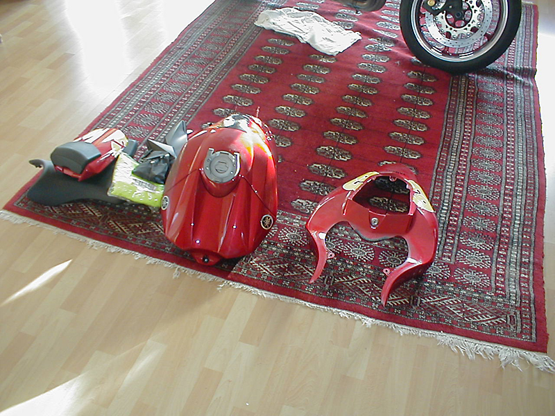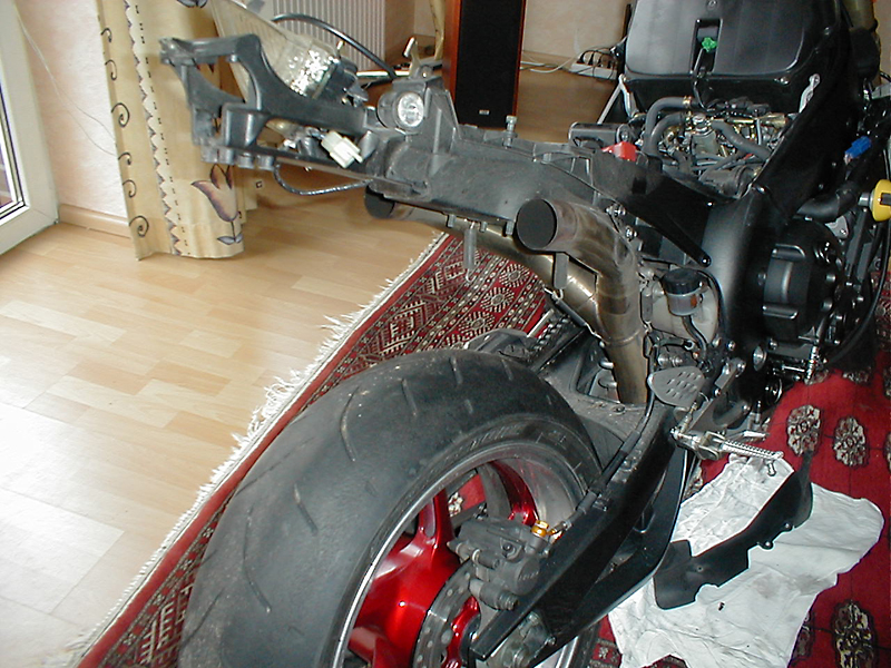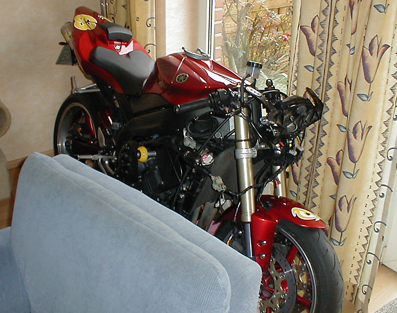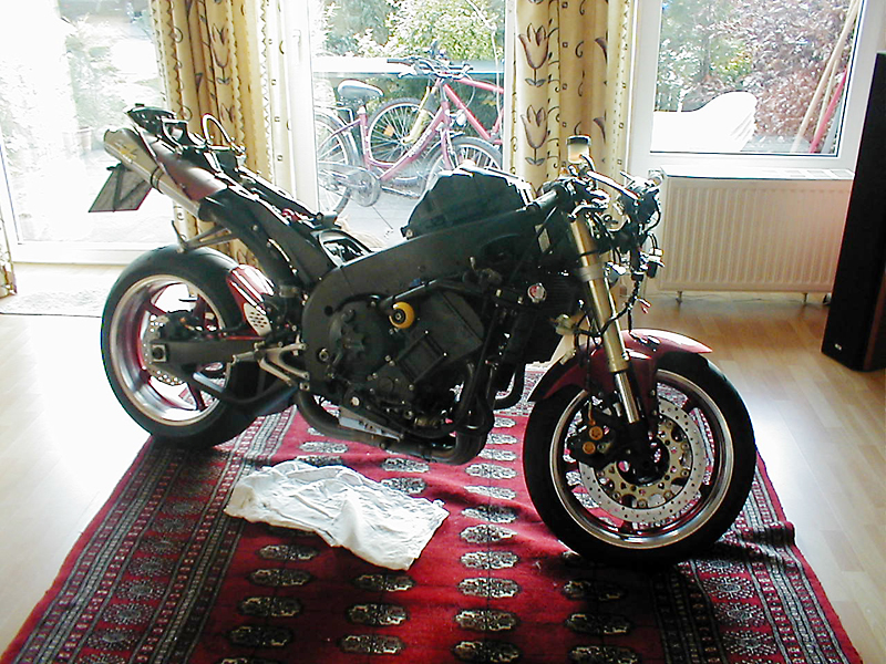 Doch von vorn: Im Herbst 2006 sah ich mich nach ner neuen Mopete um. Nach 3 Jahren CBR 600 RR sollte mal wieder was Anderes ran. Ich habe diverse Bikes Probe gefahren. Unter anderen MV Agusta Brutale, Yamaha FZ1, Honda CBR 1000 Fireblade. Aber keines dieser Bikes konnte mich �berzeugen. Dann, eines sch�nen Sonntag Morgen, bot mir mein Bruder an, seine R1 mal nen Tag zu fahren. "Klar", dachte ich, ist ne nette Abwechslung. Und eigentlich wollte ich so ein �bermotorisierten Manta gar nicht haben. Ich also runter in die Tiefgarage, den Schl�ssel umgedreht, Gang eingelegt und .... UNGLAUBLICH! Auf den ersten Metern war klar: das wird ein Spa�. Was keine andere Karre geschafft hatte - die R1 zeichnete ein Dauergrinsen in mein Gesicht. Diese Kraft, dieses Fahrwerk, die Bremsen - die muss ich haben. Viel zu schnell wurde es dunkel und ich sah ein, dass ich die R1 zur�ckbringen musste. Okay, die Einleitung war etwas ausschweifend. Kurzum: ich kaufte also im Herbst eine gebrauchte R1 und freute mich schon auf das erste Renntraining. Br�nn in Tschechien sollte es sein. Na ja, der erste Trainingstag war, wie soll ich sagen, nicht nur erfolgreich. Ich schmiss nach der Mittagspause meine Yamaha in der Eingangskurve Start/Ziel weg. Der Umgang mit 180 PS will wohl doch erlernt werden. So, und das ist der Grund, warum auch die R1 nun ein Winterprojekt ist. Ich hatte doch noch ein paar Dinge zu richten. Aber lest selbst �ber den Fortgang der Auferstehung. Viel Spa� w�nscht Euch Wolf Schmidt.