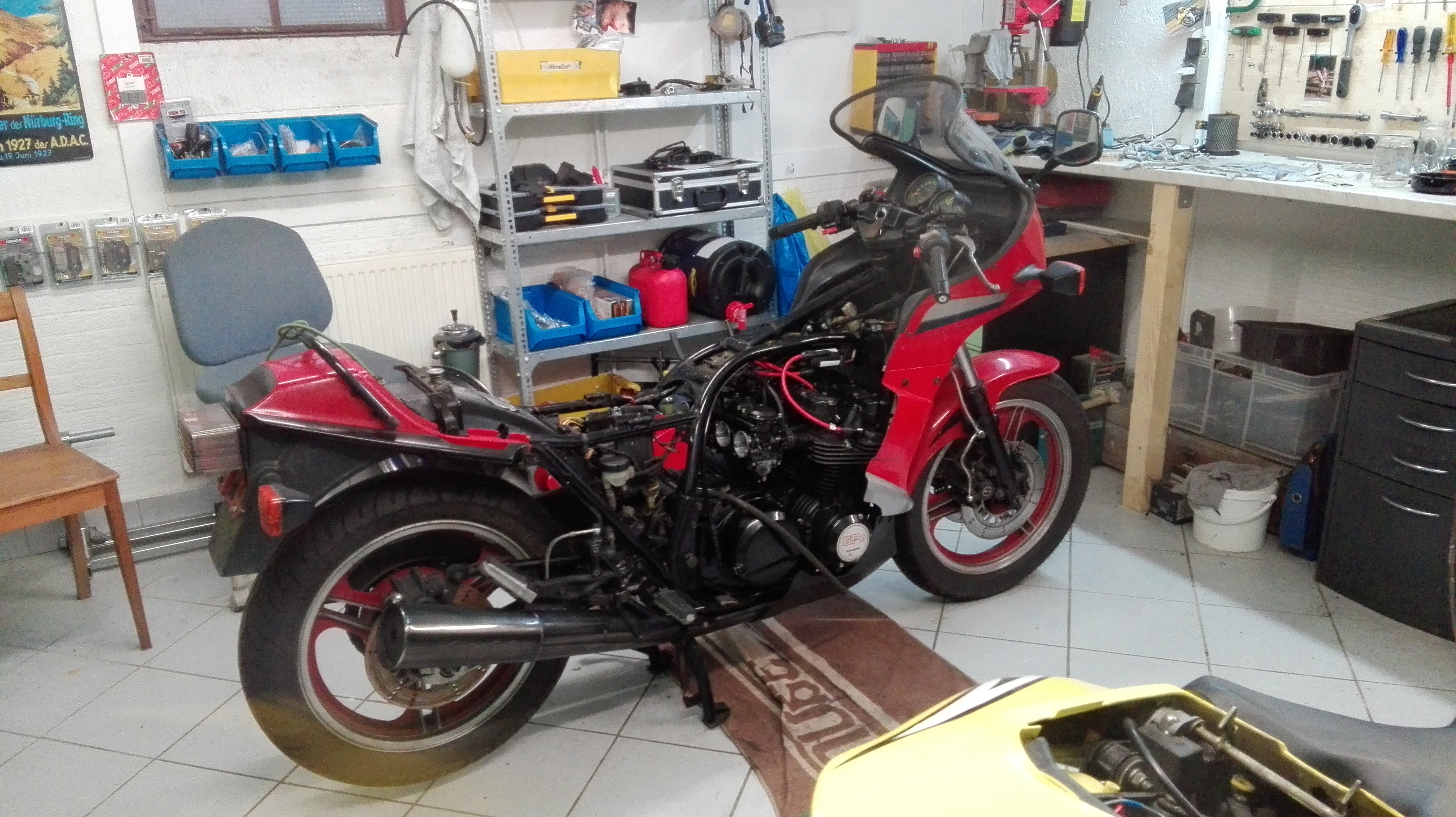 Die Kawasaki kam zu uns mit dem Problem "läuft unrund". Das war stark untertrieben. Sie lief nämlich gar nicht. Schuld war ein falsch behandelter Tank. Statt den Tank zu entrosten und danach zu versiegeln, hatte der Besitzer den Tank innen mit Rostschutzfarbe gespült. Schade nur, dass Rostschutzfarbe vom Benzin gelöst wird. Dadurch hat sich die ganze Suppe in den Vergasern festgesetzt. Also heißt es: "Ab ins Ultraschallbad". Damit bekommt man natürlich nur eine Grundreinigung hin. Den ganzen Prozess habe ich hier gesondert als Projekt beschrieben. Bleibt noch die Aufgabe den Tank wieder Instand zu setzen. Dachte ich ...